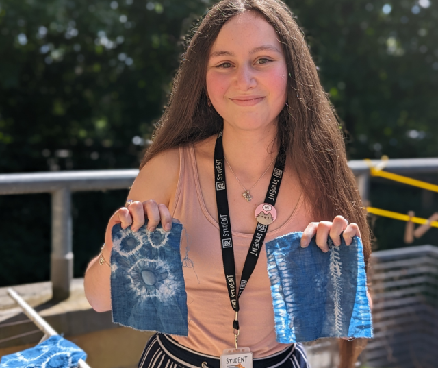 Artist Helen Sill recently visited first-year A Level Art Textiles students to talk about her experience as a Textiles Artist and traveller in India and Uzbekistan alongside running a Shibori workshop with fellow artist Liz Mullinger.
